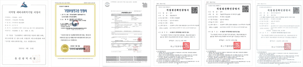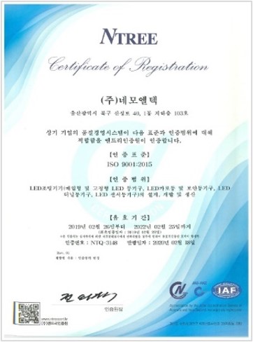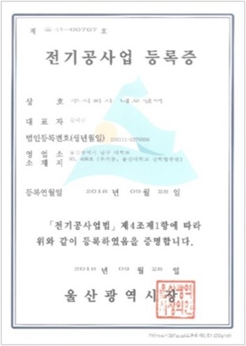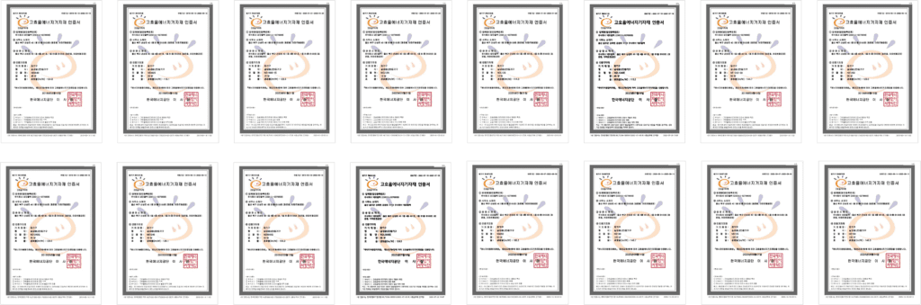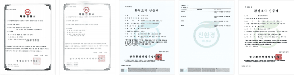 BUSINESS Certification & Award status Multiple High-Efficiency Certifications and Direct Production Verification Representative Certification Certificate of Direct Production Verification [ Indoor lighting ] Innovative Product Designation Certificate LED Indoor Lighting with Quantum Dot Film Electrical Contractor License No. Ulsan-00707 ISO 9001:2015 LED Lighting Equipment and Others Certificate of Direct Production Verification [ Indoor lighting ] Innovative ProductDesignation Certificate LED Indoor Lighting with Quantum Dot Film Electrical Contractor License No. Ulsan-00707 ISO 9001:2015 LED Lighting Equipment and Others High Efficiency Certification Registration Status Certification Status Awards History