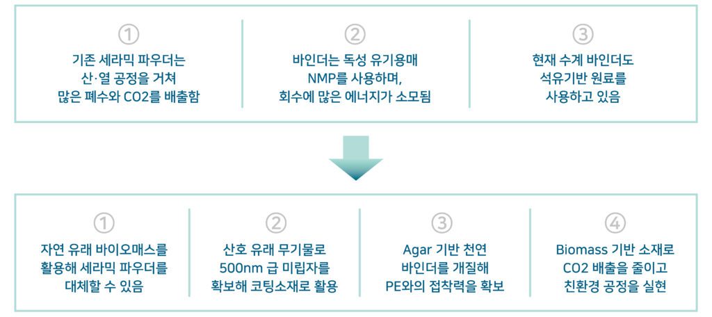 브랜드 더 셀 : The Cell 새로운 가능성을 더하는 브랜드 BI Design Concept The Cell 의 ‘T’ 와 ‘C 알파벳을 직관적으로 배치, TC 모양의 심볼로 직선 밑으로 아래로 향하는 두방향의 뿌리를 나타내었고 두가지 영역의 색으로 배터리(푸른색-에너지) + 바이오(녹색-생명) 주요 사업의 방향성을 담았습니다. 배터리 분리막의 중요성 상용 분리막 이슈 유사 기술과의 차별성 저반사 고효율 태양 전지 표면 코팅 소재 태양광 패널 반사방지 코팅 기술
