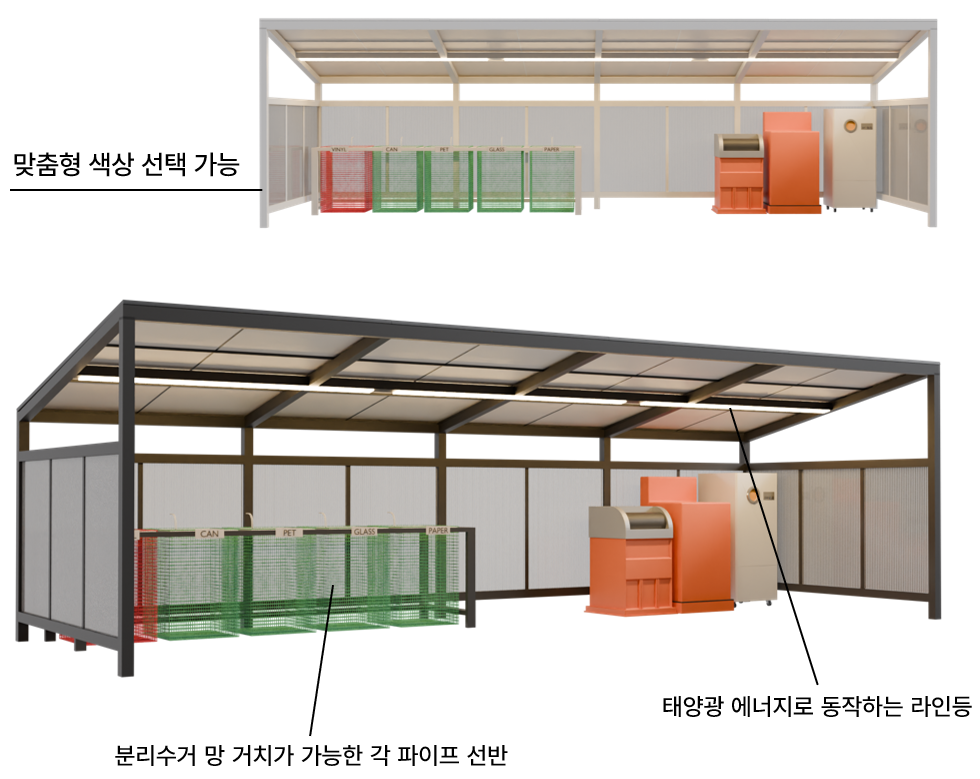 Separate collection center with lighting devices so that separate collection nets can be mounted by type and can be identified even in dark nights using solar energy